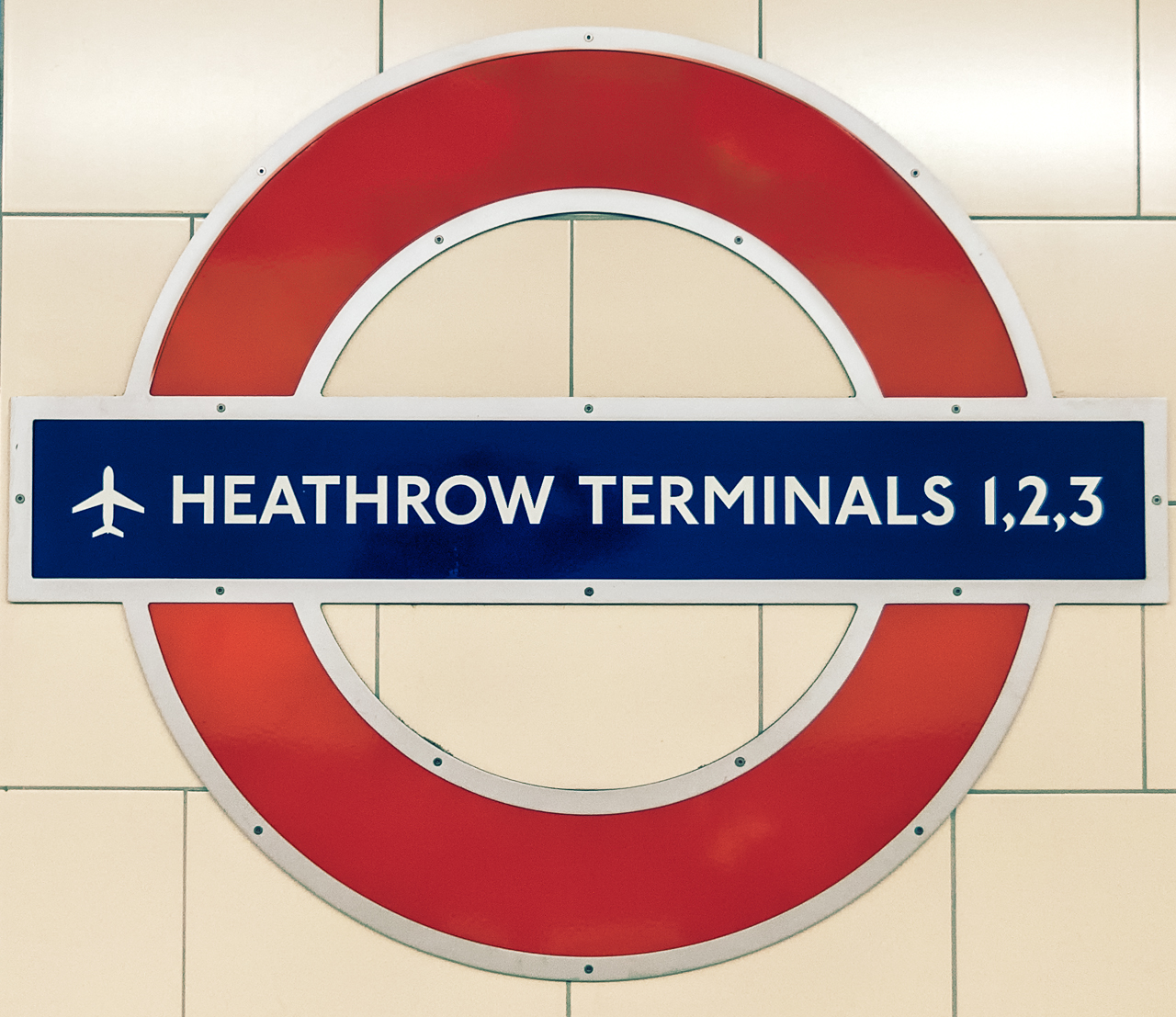 - One of the symbols of London, the tube station sign for Heathrow Terminals 1,2,3 in London, UK.