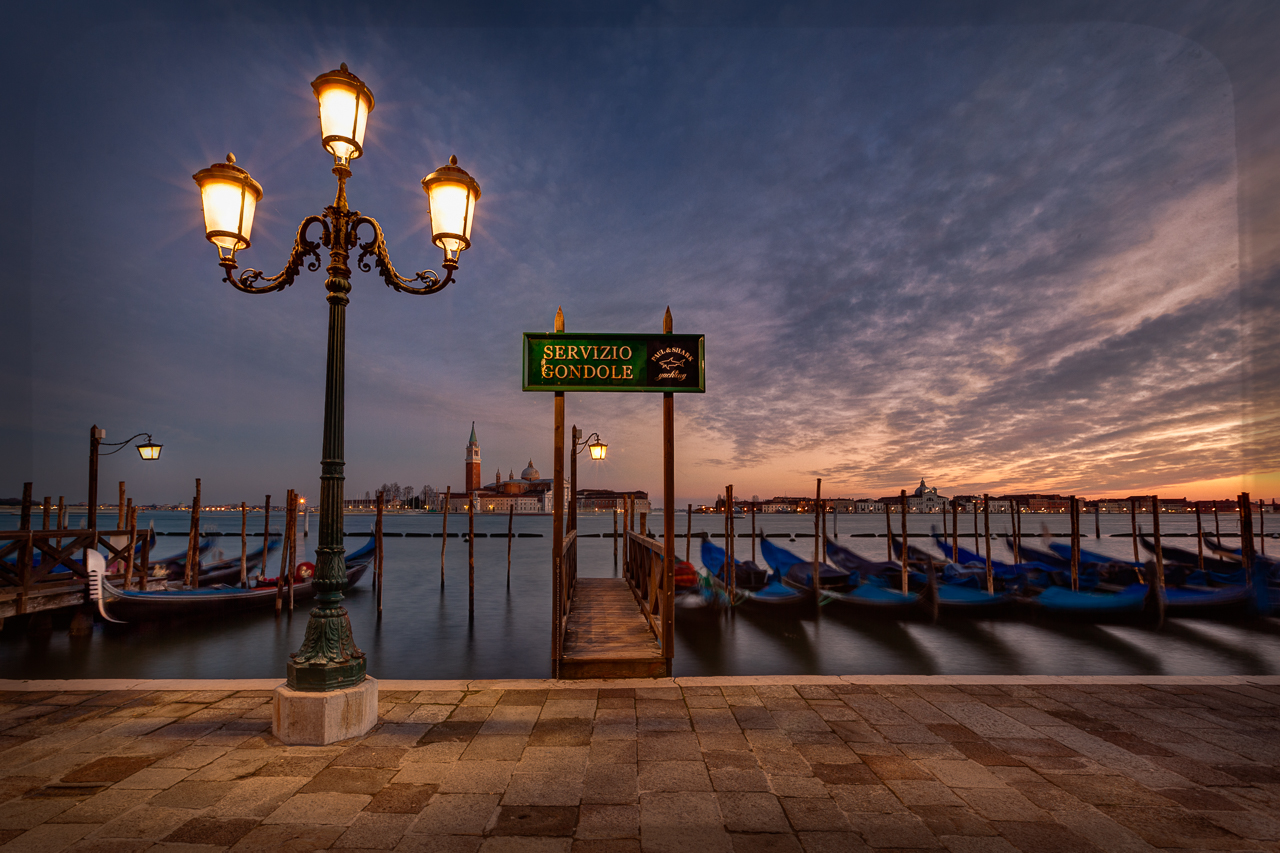 - The sky turned a deep blue as the last of the fiery sunset faded into the horizon…twilight falls on Venice.
