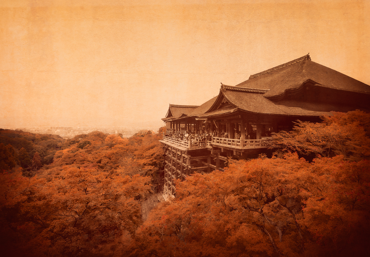 - This Buddhist temple, Kiyomizu-dera, has one of the most spectacular views of downtown Kyoto, Japan.