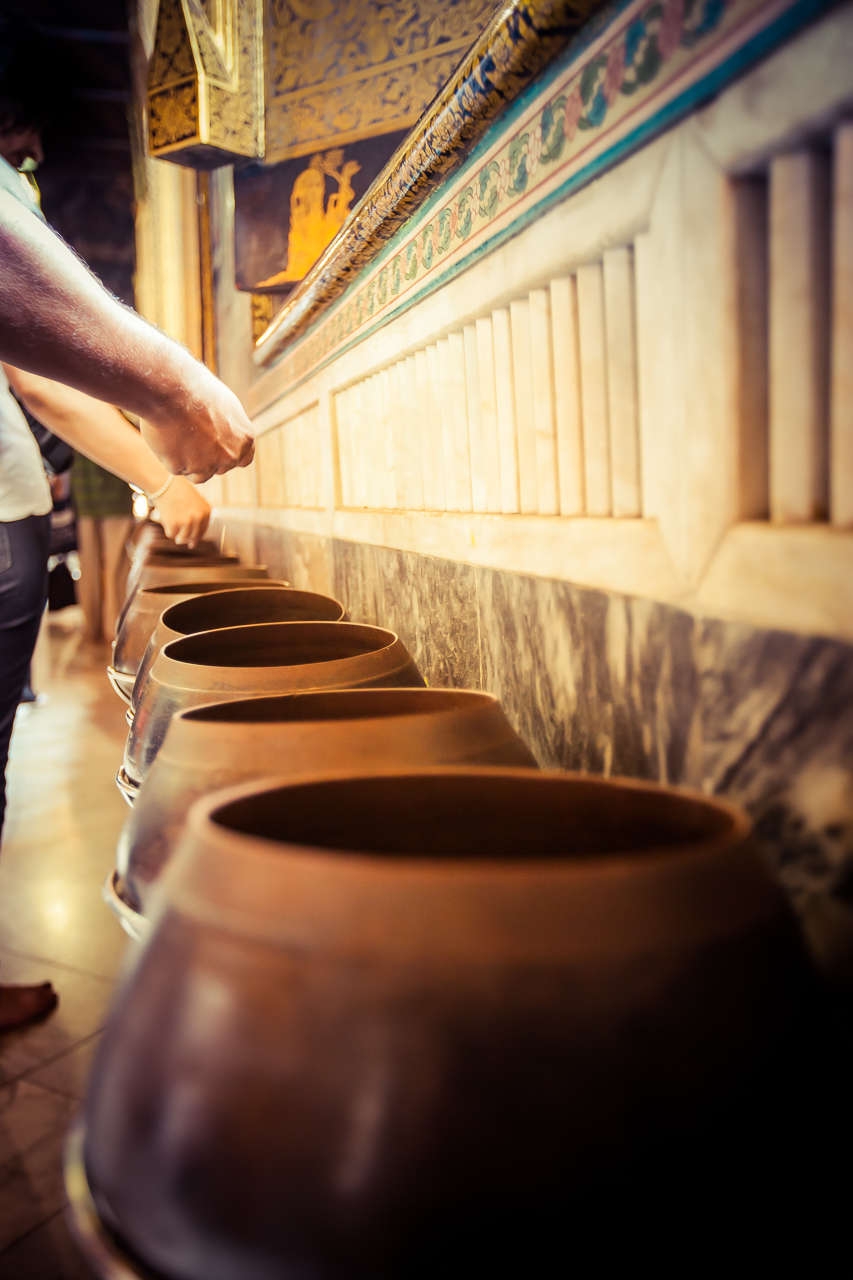 - These offering pots in Thailand are both practical for soliciting donation from visitors and also a form of mediation.